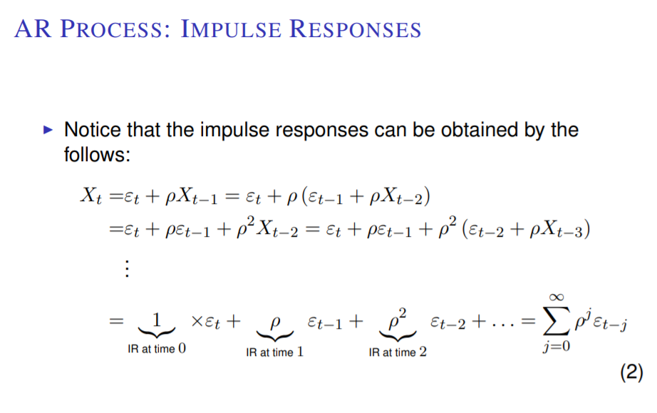 가 성립하고, 위는 충격반응함수 Impulse Responsive Function(irf)을 의미한다.
